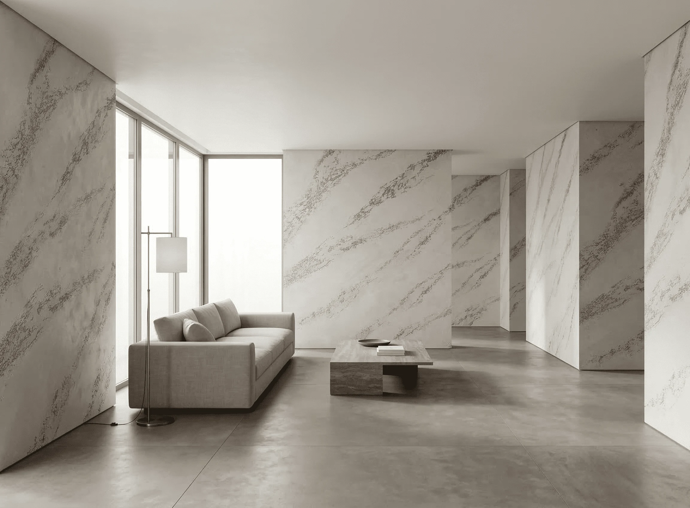 Вначале наносим штукатурку Travertino для создания основы. Достаточно нанести 1 слой, ровно распределив штукатурку по поверхности. При задаче более формализованного рисунка необходимо наносить второй слой штукатурки, создавая необходимую фактуру. Далее наносим венецианскую штукатурку Stucco Veneziano. Первый слой наносится валиком и приглаживается кельмой. Второй слой после высыхания первого наносят кельмой, шпателем или валиком с последующим приглаживанием. |