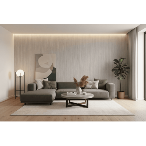 Наносим фактурную штукатурку Romano. Первый слой наносим ровно тонким слоем, заполняя поверхность от угла до угла. После высыхания, наносим второй слой фактурным валиком или кельмой, с последующим применением специальной щетки гребенки для создания подобного эффекта. |