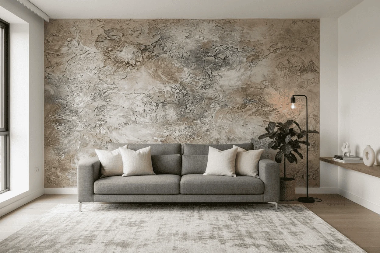 Данный декоративный эффект создается на выровненную под обои стену. Для этого потребуются следующие материалы: