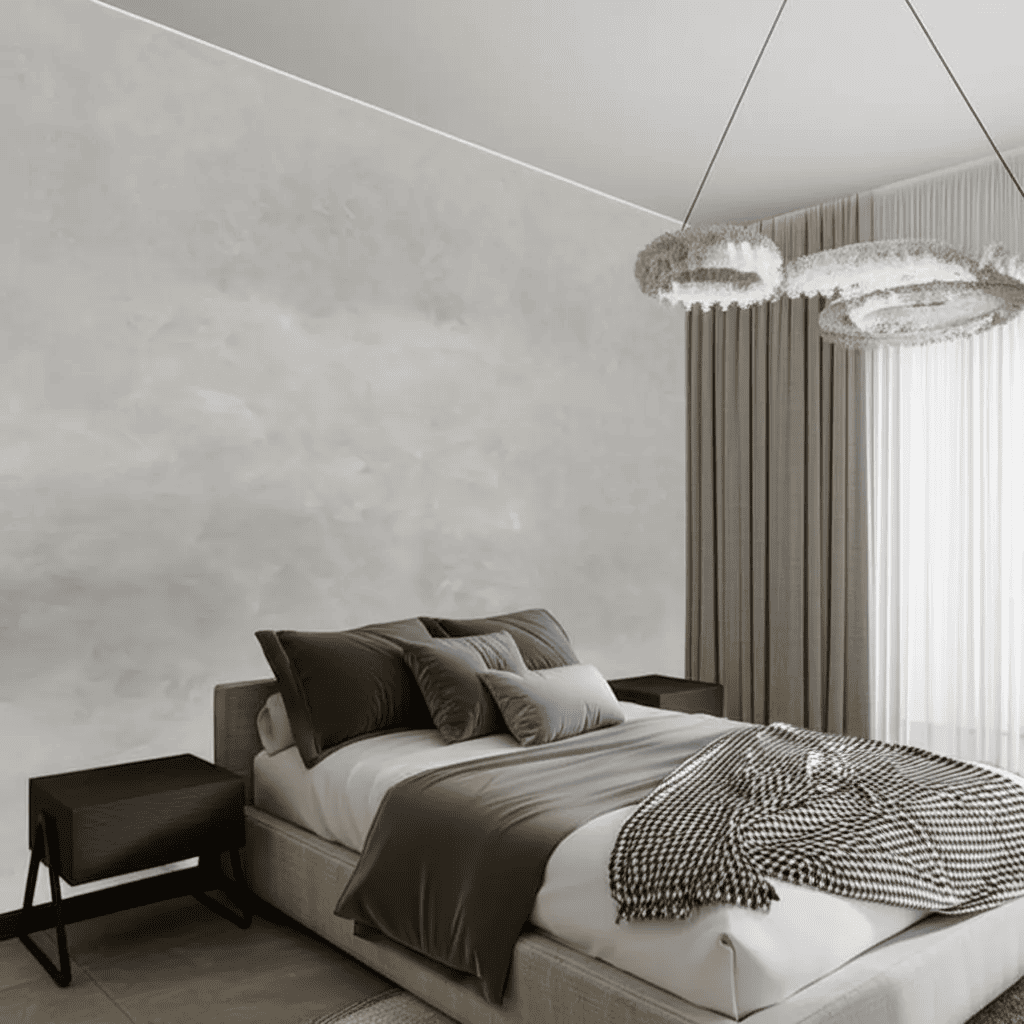 Наносим декоративную краску Pelle. Первый слой наносится кистью, однородно, заполняя поверхность. Второй слой также наносят однородно кистью. Важно не допускать однонаправленных движений кистью, так как след от ворса будет формировать рисунок фактуры. Допускается нанесение третьего слоя тем же или другим цветом для создания более яркого акцента. |