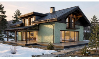 Популярным решением в отделке фасада дома является штукатурка. Это прочный материал, колеруется в различные цвета, создает ровное покрытие, которое помимо стойкости к ударам и атмосферным воздействиям, создает эффектный внешний вид, неприхотливо в эксплуатации и легко наносится.
