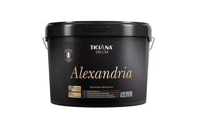 Акриловое покрытие Ticiana Deluxe Alexandria воссоздает атмосферу античной роскоши, напоминая о величественных дворцах Александрии. Штукатурка представляет собой готовый к использованию продукт, который предназначен для отделки стен снаружи и внутри помещений. Универсальный материал наносится на различные минеральные основания — гипсокартон, бетонные, кирпичные, оштукатуренные поверхности.