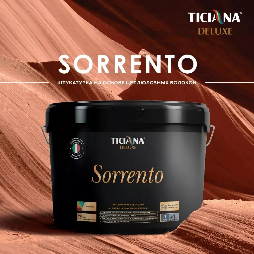 Если вы хотите создать интерьер, наполненный характером, неповторимой эстетикой и глубиной, то декоративная штукатурка премиум-класса Ticiana Deluxe Sorrento — ваш осознанный выбор. Этот материал дает возможность воплотить в жизнь смелые дизайнерские идеи. Покрытие придает поверхности вид благородного состаренного камня, самана, известняка, песчаника и т.д.