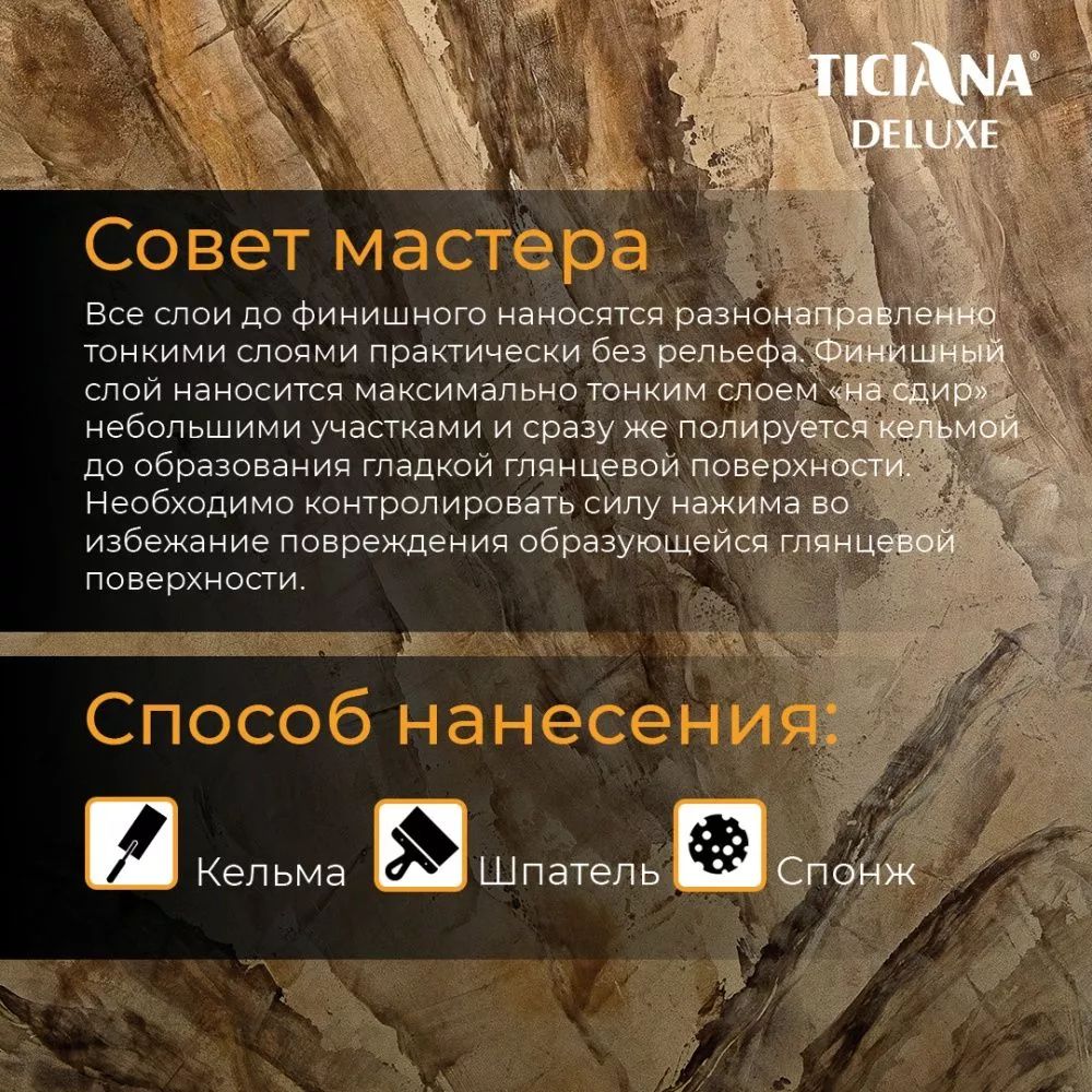 Ticiana Deluxe Veniera Calce занимает особое место среди премиальных отделочных материалов. Венецианская штукатурка для внутренней отделки позволяет получить бесшовные поверхности с иллюзией глубины и благородной глянцевой фактурой, имитирующей отполированный натуральный камень. Это решение подойдет для тех, кто ценит органичное сочетание эстетики, практичности и надежности при отделке интерьера.